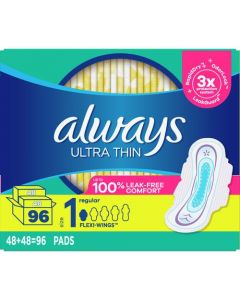 - Always Ultra Thin Regular Pads with Wings 96 UnitsSpecial Price J$3,501.94 Discounted Item J$3,686.25